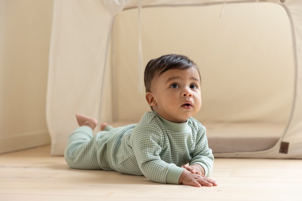 Feetje pyjama wafel groen melange. Al vele jaren maakt Feetje deze fantastische pyjama in een fijn wafelmotiefje. Zoek je een leuk kraamcadeau? Dan zit je met deze pyjama altijd goed.
